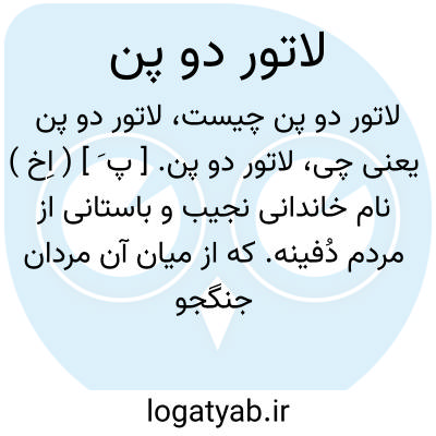 لاتور دو پن. [ پ َ ] ( اِخ ) نام خاندانی نجیب و باستانی از مردم دُفینه. که از میان آن مردان جنگجو و سیاستمدار و روحانی و عالم علم الاجتماع برخاسته است.
