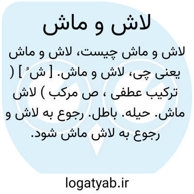 لاش و ماش. [ ش ُ ] ( ترکیب عطفی، ص مرکب ) لاش ماش. حیله. باطل. رجوع به لاش و رجوع به لاش ماش شود.