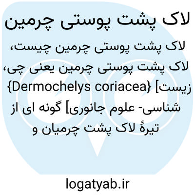 {Dermochelys coriacea} [زیست شناسی- علوم جانوری] گونه ای از تیرۀ لاک پشت چرمیان و راستۀ لاک پشتسانان که لاکی نرم و قطره شکل دارد؛ سر آن بدون فلس است و برجستگی های دندان مانندی در هر طرف آروارۀ بالای آن وجود دارد؛ صدف و پوست آن سیاه و دارای خال های سفید و زرد است