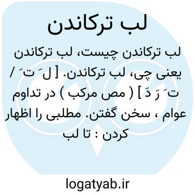 لب ترکاندن. [ ل َ ت َ / ت َ رَ دَ ] ( مص مرکب ) در تداوم عوام، سخن گفتن. مطلبی را اظهار کردن: تا لب ترکاندم...