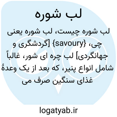 {savoury} [گردشگری و جهانگردی] لب چره ای شور، غالباً شامل انواع پنیر، که بعد از یک وعدۀ غذای سنگین صرف می شود