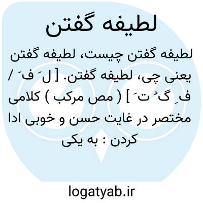 لطیفه گفتن. [ ل َ ف َ / ف ِ گ ُ ت َ ] ( مص مرکب ) کلامی مختصر در غایت حسن و خوبی ادا کردن: