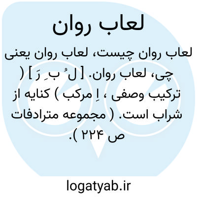 لعاب روان. [ ل ُ ب ِ رَ ] ( ترکیب وصفی، اِ مرکب ) کنایه از شراب است. ( مجموعه مترادفات ص 224 ).