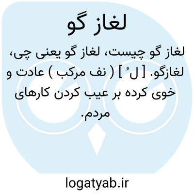 لغازگو. [ ل ُ ] ( نف مرکب ) عادت و خوی کرده بر عیب کردن کارهای مردم.