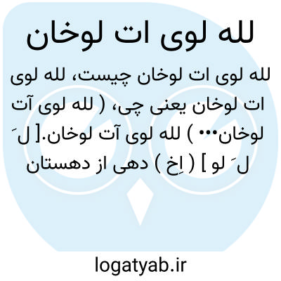 ( لله لوی آت لوخان••• ) لله لوی آت لوخان.[ ل َ ل َ لو ] ( اِخ ) دهی از دهستان نازلو از بخش حومه شهرستان ارومیه، واقع در 25هزارگزی شمال خاوری ارومیه و 7هزارگزی خاور شوسه ارومیه به سلماس. جلگه، معتدل و مالاریائی و دارای 102 تن سکنه. آب آن از نازلوچای. محصول آنجا غلات، چغندر، توتون، حبوبات و کشمش. شغل اهالی زراعت و صنایع دستی زنان جوراب بافی و راه آن ارابه رو است. ( از فرهنگ جغرافیایی ایران ج 4 ).
