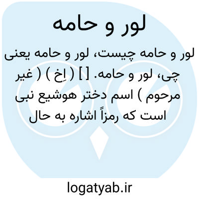 لور و حامه. [ ] ( اِخ ) ( غیر مرحوم ) اسم دختر هوشیع نبی است که رمزاً اشاره به حال مملکت بنی اسرائیل است که رحمت خدا را گم کرده بودند ( هوشیعا:6 و 8 ). رجوع به لوعمی شود. ( قاموس کتاب مقدس ).