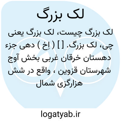 لک بزرگ. [ ] ( اِخ ) دهی جزء دهستان خرقان غربی بخش آوج شهرستان قزوین، واقع در شش هزارگزی شمال باختری آوج و 36هزارگزی راه عمومی. جلگه، معتدل و دارای 522 تن سکنه. آب آن از چشمه سار و رودخانه خررود. محصول آنجا غلات و بنشن. شغل اهالی زراعت و صنایع دستی آنان قالی و جاجیم بافی و راه آن مالرو است و از آب گرم ماشین می توان برد. ( از فرهنگ جغرافیایی ایران ج 6 ).