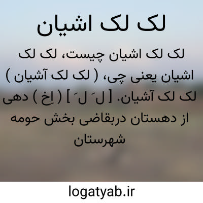 ( لک لک آشیان ) لک لک آشیان. [ ل َ ل َ ] ( اِخ ) دهی از دهستان دربقاضی بخش حومه شهرستان نیشابور، واقع در 4هزارگزی خاوری نیشابور. جلگه، معتدل و دارای 144 تن سکنه. آب آن از قنات. محصول آنجا غلات. شغل اهالی زراعت و داد و ستد در شهر نیشابور و راه آن مالرو است. مقبره الب ارسلان در جنوب آن واقع است. ( از فرهنگ جغرافیایی ایران ج 9 ).