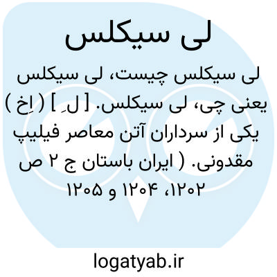 لی سیکلس. [ ل ِ ] ( اِخ ) یکی از سرداران آتن معاصر فیلیپ مقدونی. ( ایران باستان ج 2 ص 1202، 1204 و 1205 ).