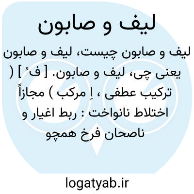 ( اسم ) ۱- لیف با صابون. ۲- اختلاط بی تناسب: ربط اغیار وناصحان فرخ همچو تالیف لیف وصابون است. ( محسن تاثیر آنند. لغ. )