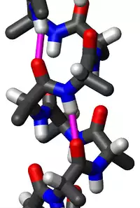مارپیچ آلفا. ساختاری مارپیچی که از آمینواسیدها تشکیل یافته و در ساختمان پروتئین ها نقش دارد. این ساختار به علت داشتن پیوند هیدروژنی آبدوست است. مارپیچ آلفا یکی از ساختارهای دوم رایج در پروتئین هاست. مارپیچ آلفا یک مارپیچ راستگرد است که ساختار آن هر ۵. ۴ آنگستروم یکبار تکرار می شود. در هر دو مارپیچ آلفا، ۳. ۶ اسید آمینه وجود دارد. یعنی هر ۱. ۵ آنگستروم یک اسید آمینه در طول مارپیچ آلفا قرار می گیرد. هر گروه کربوکسیل و آمین در مارپیچ آلفا با اسید آمینه ای با فاصله چهار تا از خود، دارای پیوند هیدروژنی می باشد و این الگو در سراسر مارپیچ، غیر از چهار اسیدآمینه در دو انتهای آن تکرار شده است. مارپیچ آلفا رایج ترین آرایش ساختاری در ساختار ثانویه پروتئین ها است. همچنین این افراطی ترین نوع ساختار موضعی است، و این ساختار محلی است که به آسانی از روی دنباله ای از اسیدهای آمینه پیش بینی می شود.