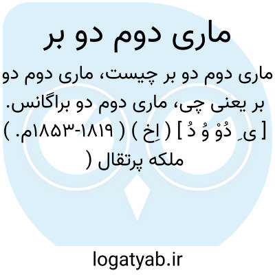 ماری دوم دو براگانس. [ ی ِ دُوْ وُ دُ ] ( اِخ ) ( 1819-1853م. ) ملکه پرتقال ( 1826-1853م. ) دختر پیراول امپراتور برزیل و همسر «فردینان دو ساکس - کوبورگ - گوتا». ( از لاروس ).