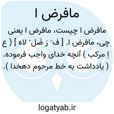 مافرض ا. [ ف َ رَ ضَل ْ لاه ] ( ع اِ مرکب ) آنچه خدای واجب فرموده. ( یادداشت به خط مرحوم دهخدا ).