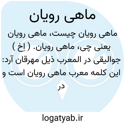ماهی رویان. ( اِخ ) جوالیقی در المعرب ذیل مهرقان آرد: این کلمه معرب ماهی رویان است و در حاشیه همان کتاب آمده: رویان در نسخه اصل بدون نقطه و در نسخه دیگر به جای «یان « »بان » بوده است و چنانکه در قاموس آمده «یان » درست است و عبارت قاموس و شرح آن چنین است «مهرقان [ م ُ رُ ] و [ م َ رَ]، صاغانی گوید که ضبط دوم اصح است، و مهرقان [ م ُ رَ ]» از نامهای دریاست یا جایی که در آن آب جریان یابد و سپس خشک گردد و گوش ماهیها در آن بمانند. و مُهرقان شهری است در ساحل بصره که معرب «ماهی رویان » است یعنی کسانی که روی آنان همچون ماهی باشد و اگر معرب «ماه رویان » باشد معنی آن چنین است: کسانی که روی آنان چون ماه باشد. و جوالیقی از مهرقان اسم شهر را اراده کرده است. - انتهی. اما مهرقان مربوط به ری است و ضبط صحیح آن که بندری بوده است در ساحل خلیج فارس، مهروبان می باشد و امروزه خرابه های آن نزدیک بندر دیلم واقع است. و رجوع به ماهی روبان و مهروبان شود.