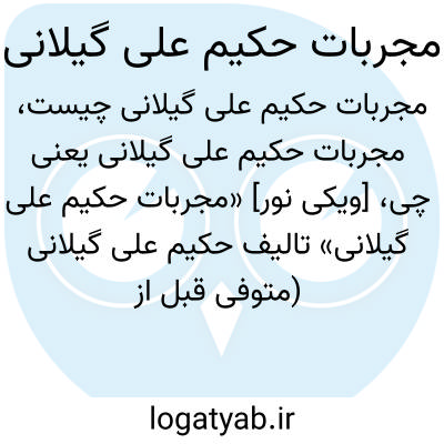 [ویکی نور] «مجربات حکیم علی گیلانی» تالیف حکیم علی گیلانی (متوفی قبل از 1018ق) از جمله آثار طب سنتی به زبان فارسی است.