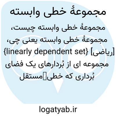 {linearly dependent set} [ریاضی] مجموعه ای از بُردارهای یک فضای بُرداری که خطیمستقل نباشد