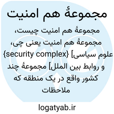{security complex} [علوم سیاسی و روابط بین الملل] مجموعۀ چند کشور واقع در یک منطقه که ملاحظات امنیتی آنها چنان به یکدیگر وابسته است که نمی توان امنیت یکی را بدون توجه به امنیت دیگران در نظر گرفت