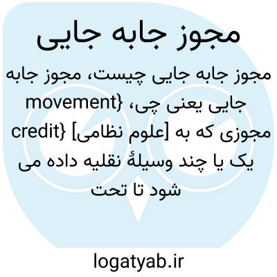 {movement credit} [علوم نظامی] مجوزی که به یک یا چند وسیلۀ نقلیه داده می شود تا تحت نظارت و در زمان مقرر، براساس دستورعملِ جابه جایی، در مسیری مشخص حرکت کنند