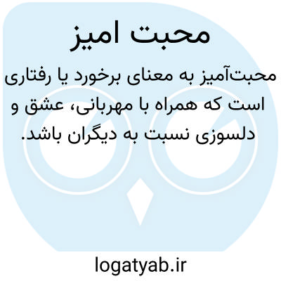 واژه «محبت‌ آمیز» به معنای برخورد یا رفتاری است که همراه با عشق، مهربانی، علاقه و دلسوزی باشد. کسی که محبت‌ آمیز رفتار می‌کند، به دیگران توجه نشان می‌دهد، احترام می‌گذارد و سعی می‌کند با رفتار و گفتار خود دل دیگران را شاد کند. این واژه اغلب برای توصیف روابط انسانی، تعاملات اجتماعی و رفتار والدین، معلمان یا دوستان به کار می‌رود.