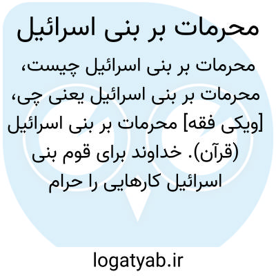 [ویکی فقه] محرمات بر بنی اسرائیل (قرآن). خداوند برای قوم بنی اسرائیل کارهایی را حرام کرده بود که در قرآن به این کارها اشاره شده است.