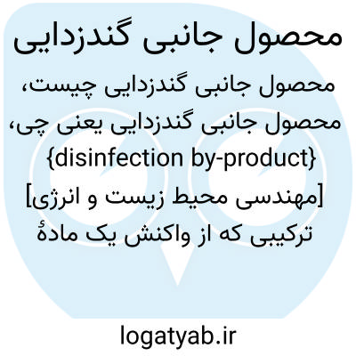 {disinfection by-product} [مهندسی محیط زیست و انرژی] ترکیبی که از واکنش یک مادۀ گندزدا با موادآلی موجود در آب به وجود می آید متـ. برحاصل گندزدایی