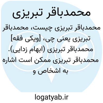 [ویکی فقه] محمدباقر تبریزی (ابهام زدایی). محمدباقر تبریزی ممکن است اشاره به اشخاص و شخصیت های ذیل باشد: • محمدباقر ارونقی تبریزی اصفهانی، از فضلای قرن دوازدهم هجری در اصفهان• محمدباقر بن علی تبریزی اصفهانی، از علماء قرن دوازدهم هجری در اصفهان