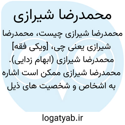 [ویکی فقه] محمدرضا شیرازی (ابهام زدایی). محمدرضا شیرازی ممکن است اشاره به اشخاص و شخصیت های ذیل باشد: • سیدمحمدرضا شیرازی، فرزند آیت الله سید محمد حسینی شیرازی (۱۴۲۲ ق)، معروف به مجدد ثانی و صاحب موسوعه صد و ده جلدی «الفقه»• شیخ محمدرضا شیرازی، از علمای سیاستمدار و مجاهد ایران در قرن چهاردهم هجری