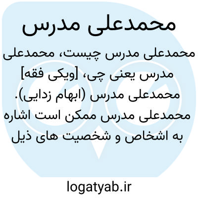 [ویکی فقه] محمدعلی مدرس (ابهام زدایی). محمدعلی مدرس ممکن است اشاره به اشخاص و شخصیت های ذیل باشد: • محمدعلی مدرس افغانی، مجتهد و فقیه برجستهٔ اهل افغانستان و استاد سطوح عالی ادبیات و نحو در حوزه علمیه قم• محمدعلی مدرس چهاردهی، از عالمان نامدار حوزه کهن سال نجف اشرف (قرن ۱۳- ۱۴ هـ. ق.)• محمدعلی مدرس خیابانی تبریزی، از علمای شیعه در قرن چهاردهم هجری قمری