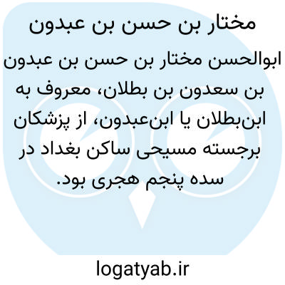 [ویکی فقه] ابن بطلان، ابوالحسن مختار بن حسن بن عبدون بن سعدون بن بطلان، مشهور به ابن بطلان یا ابن عبدون از اطباء مسیحی بغداد در قرن پنجم بوده است.