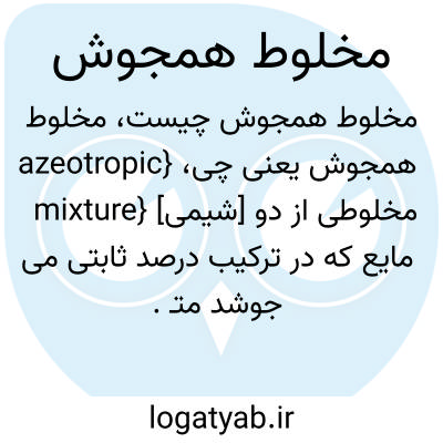 {azeotropic mixture} [شیمی] مخلوطی از دو مایع که در ترکیب درصد ثابتی می جوشد متـ. همجوش azeotrope
