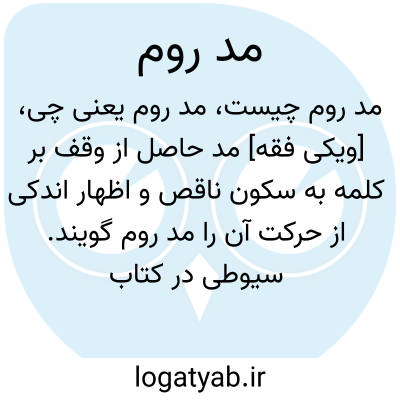 [ویکی فقه] مد حاصل از وقف بر کلمه به سکون ناقص و اظهار اندکی از حرکت آن را مد روم گویند.