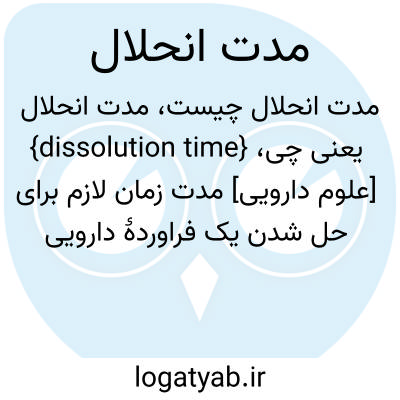 {dissolution time} [علوم دارویی] مدت زمان لازم برای حل شدن یک فراوردۀ دارویی