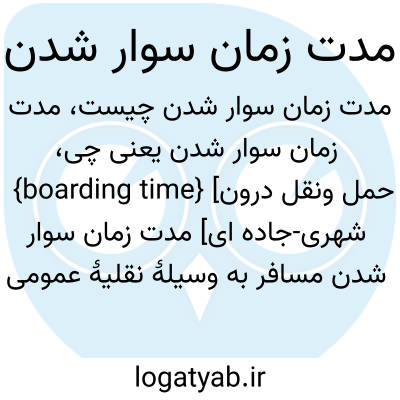 {boarding time} [حمل ونقل درون شهری-جاده ای] مدت زمان سوار شدن مسافر به وسیلۀ نقلیۀ عمومی که برحسب مدت زمان لازم برای سوار شدن هر مسافر یا کل زمان لازم برای سوار شدن همۀ مسافران محاسبه می شود