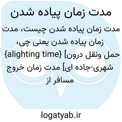 {alighting time} [حمل ونقل درون شهری-جاده ای] مدت زمان خروج مسافر از وسیلۀ نقلیۀ عمومی که برحسب مدت زمان پیاده شدن هر مسافر یا کل زمان لازم برای پیاده شدن همۀ مسافران محاسبه می شود