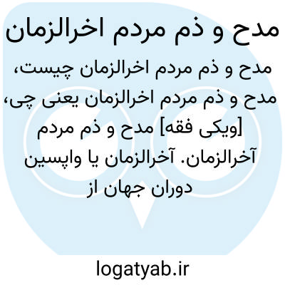 [ویکی فقه] مدح و ذم مردم آخرالزمان. آخرالزمان یا واپسین دوران جهان از دیدگاه ادیان الهی به دورانی گفته می شود که وقایعی عظیم و عجیب در آن رخ می دهد که با ختم نبوت و نزول واپسین شریعت وحیانی تحقق می یابد. تمامی کتب آسمانی و حتی برخی مکاتب غیر الهی به ظهور منجی در این دوران بشارت داده اند. پیامبر اسلام (صلی الله علیه و آله وسلّم) و امامان معصوم (علیهم السّلام) در روایاتی نشانه ها و علائمی را برای مردم و مسلمانان در آخرالزمان بیان کرده اند که برخی از اخبار در مذمت و برخی در مدح آنها وارد شده است.