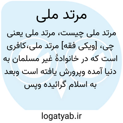 [ویکی شیعه] مُرْتَد مِلّی به فردی گفته می شود که هنگام انعقاد نطفه اش، پدر یا مادرش یا هر دومسلمان نباشند و بعد از بلوغ، مسلمان شده باشد و سپس از اسلام خارج شده و کافر شده باشد. مجازات مرتد ملی، ممنوعیت از تصرف در اموال و فسخ ازدواج است و در صورتی که مرد مرتد ملی توبه نکند، قتل است. اما مرتد ملی زن، تا زمانی که توبه کند زندانی می شود. به نظر بسیاری از فقها مهلت زمان توبه، سه روز است.