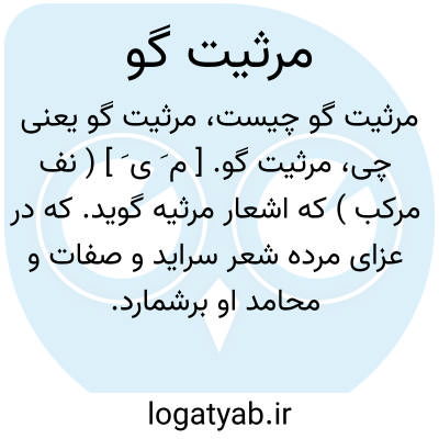 مرثیت گو. [ م َ ی َ ] ( نف مرکب ) که اشعار مرثیه گوید. که در عزای مرده شعر سراید و صفات و محامد او برشمارد. مرده ستا: