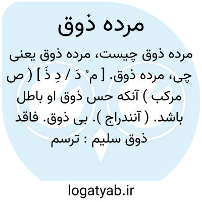 آنکه ذوق لطیف وسلیم را از دست داده بی ذوق: ترسم که مرده ذوق شمارند خضر را جان دادنی ز شوق تو روزی هوس نکرد. ( ظهوری )