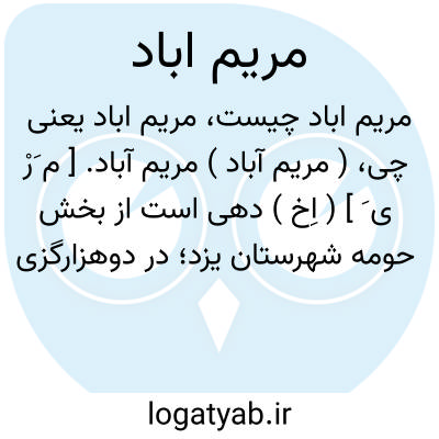 ( مریم آباد ) مریم آباد. [ م َرْ ی َ ] ( اِخ ) دهی است از بخش حومه شهرستان یزد؛ در دوهزارگزی شمال شرقی یزد، درجلگه معتدل واقع و دارای 2018 تن سکنه است. آبش ازقنات و محصولش غلات و شغل مردمش زراعت و صنایع دستی آنان نساجی است. ( از فرهنگ جغرافیایی ایران ج 10 ).