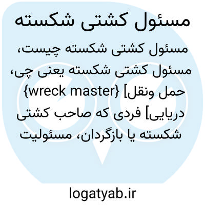 {wreck master} [حمل ونقل دریایی] فردی که صاحب کشتی شکسته یا بازگردان، مسئولیت مراقبت از کشتی شکسته و اموال آن را به او واگذار می کند