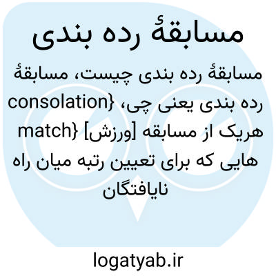 {consolation match} [ورزش] هریک از مسابقه هایی که برای تعیین رتبه میان راه نایافتگان به مراحل بالاتر برگزار می شود
