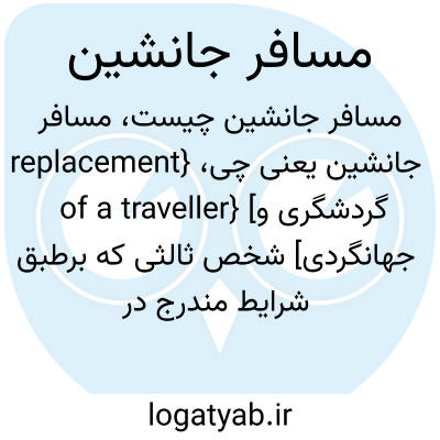 {replacement of a traveller} [گردشگری و جهانگردی] شخص ثالثی که برطبق شرایط مندرج در قرارداد مسافرتی میتواند به جای مسافر اصلی از خدمات گردشگری استفاده کند