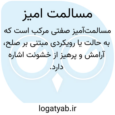 ( مسالمت آمیز ) مسالمت آمیز. [ م ُ ل َ / ل ِ م َ ] ( ن مف مرکب ) صلح آمیز. با مسالمت و صلح. آشتی جویانه.