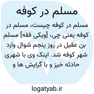 [ویکی فقه] مسلم بن عقیل در روز پنجم شوال وارد شهر کوفه شد. اینک وی با شهری حادثه خیز و با گرایش ها و افکار مختلف مواجه است؛ شهری که اگرچه به ظاهر آرام است، آرامش قبل از طوفان را می گذراند. او پس از ورود به کوفه به خانه مختار بن ابی عبیدثقفی (یکی از کسانی که پنهانی با مسلم بیعت کرد، مختار بود. اما او روز خروج مسلم، در ملکش واقع در خطرنیه در بیرون کوفه بود. و در شهر حضور نداشت) وارد شد. خبر آمدن او به کوفه، شایع شد و شیعیان شروع به رفت و آمد نزد او کردند.