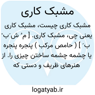 ایجاد شبکه با تراش دادن چوب، فلز، سفال، و سنگ. از هنرهای صناعی کهن ایرانی است. این هنر بیشتر روی چوب صورت می گیرد و با آن اشیایی چون در، پنجره، منبر، رحل، صندوق و قاب می سازند. با مشبک کاری تخته سه لایی نیز تابلوهای تزیینی تهیه می کنند. مشبک کاری روی تختۀ سه لایی به این ترتیب است که ابتدا طرحی را روی کاغذ می کشند، سپس با کاربن آن را روی تخته سه لایی انتقال می دهند؛ آن گاه، قسمت های زاید را با مته سوراخ می کنند و پس از عبور یک سرِ ارۀ مویی از آن، برش طرح موجود را آغاز می کنند. پس از اتمام کار، چون اثر به سبب تراش خوردن بسیار شکننده است، آن را با نخ و سوزن روی مقوایی که پارچه ای بر روی آن کشیده شده است، می دوزند یا با چسب می چسبانند و سپس داخل قاب شیشه ای قرار می دهند. مشبک کاری روی تخته سه لایی با ابزار ساده ای از قبیل کمانه، ارّه، مته، چکش، سُمباده، چسب، انبردست، میز کار و تخته سه لا صورت می گیرد. نکتۀ مهم در مشبک کاری روی تخته سه لایی، یکپارچه بودن کار هنگام بریدن نقوش است تا اتصال اضلاع به سطح چوب حداقل باشد.