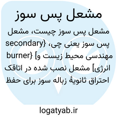 {secondary burner} [مهندسی محیط زیست و انرژی] مشعل نصب شده در اتاقک احتراق ثانویۀ زباله سوز برای حفظ کمینۀ دما و احتراق کامل گازهای نسوخته متـ. پس سوز 1 after burner
