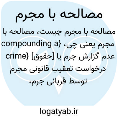 {compounding a crime} [حقوق] عدم گزارش جرم یا درخواست تعقیب قانونی مجرم توسط قربانی جرم، هنگامی که قربانی اقدام به اخذ رشوه کرده باشد یا خواستار جبران خسارت توسط بزه کار شده باشد