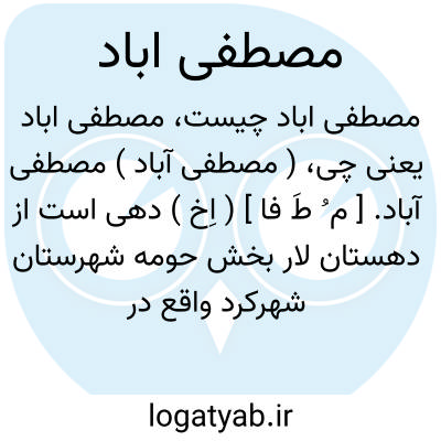 ( مصطفی آباد ) مصطفی آباد. [ م ُ طَ فا ] ( اِخ ) دهی است از دهستان لار بخش حومه شهرستان شهرکرد واقع در 12هزارگزی باختر شهرکرد با 447 تن جمعیت. آب آن از چشمه و راه آن اتومبیل رو است. ( از فرهنگ جغرافیائی ایران ج 10 ).