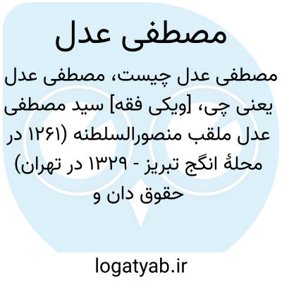 [ویکی فقه] سید مصطفی عدل ملقب منصورالسلطنه (۱۲۶۱ در محلهٔ انگج تبریز - ۱۳۲۹ در تهران) حقوق دان و سیاست مدار ایرانی بود. وی از اولین اساتید حقوق ایران بود که در پی ریزی دادگستری نوین ایران در دوران رضاشاه از جمله تدوین قانون تجارت و قانون مجازات عمومی نقش مهمی را ایفا کرده و دو بار وزیر فرهنگ و دو بار وزیر دادگستری (عدلیه) در دوره پهلوی اول بود و همین طور ریاست صدمین دوره اجلاسیه شورای جامعه ملل را نیز عهده دار شد.