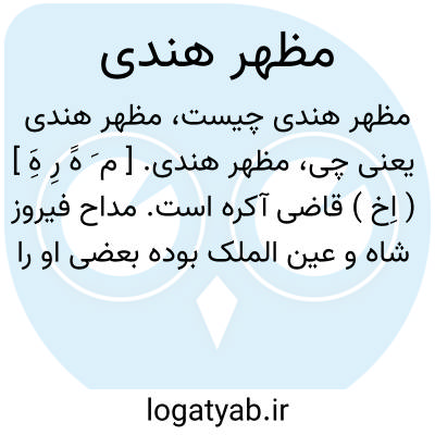 مظهر هندی. [ م َ هََ رِ هَِ ] ( اِخ ) قاضی آکره است. مداح فیروز شاه و عین الملک بوده بعضی او را مظهر مذکور خوانند و بعضی جدا دانند علی ای حال به نام او میباشد. از اوست: